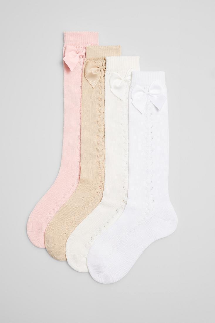 Calcetines calados largos infantiles, elegantes y cómodos. Ideales para ceremonias, celebraciones o uso diario.
