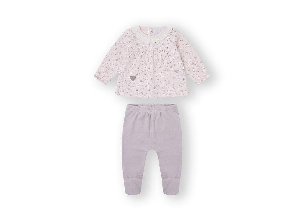 Conjunto de bebé de manga larga tejido de algodón natural.