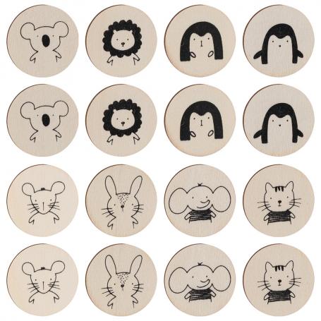 juego infantil de memoria, fichas de madera para colorear, juego educativo infantil, juego de memoria creativo, juego Montessori, set de fichas de madera niños, regalo infantil educativo, bolsa de algodón infantil, manualidades para niños