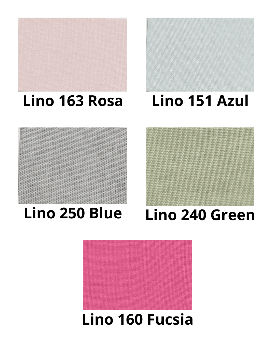 Lino 151 Celeste, Lino 160 Fucsia, Lino 163 Rosa, Lino 240 Green, Lino 250 Blue