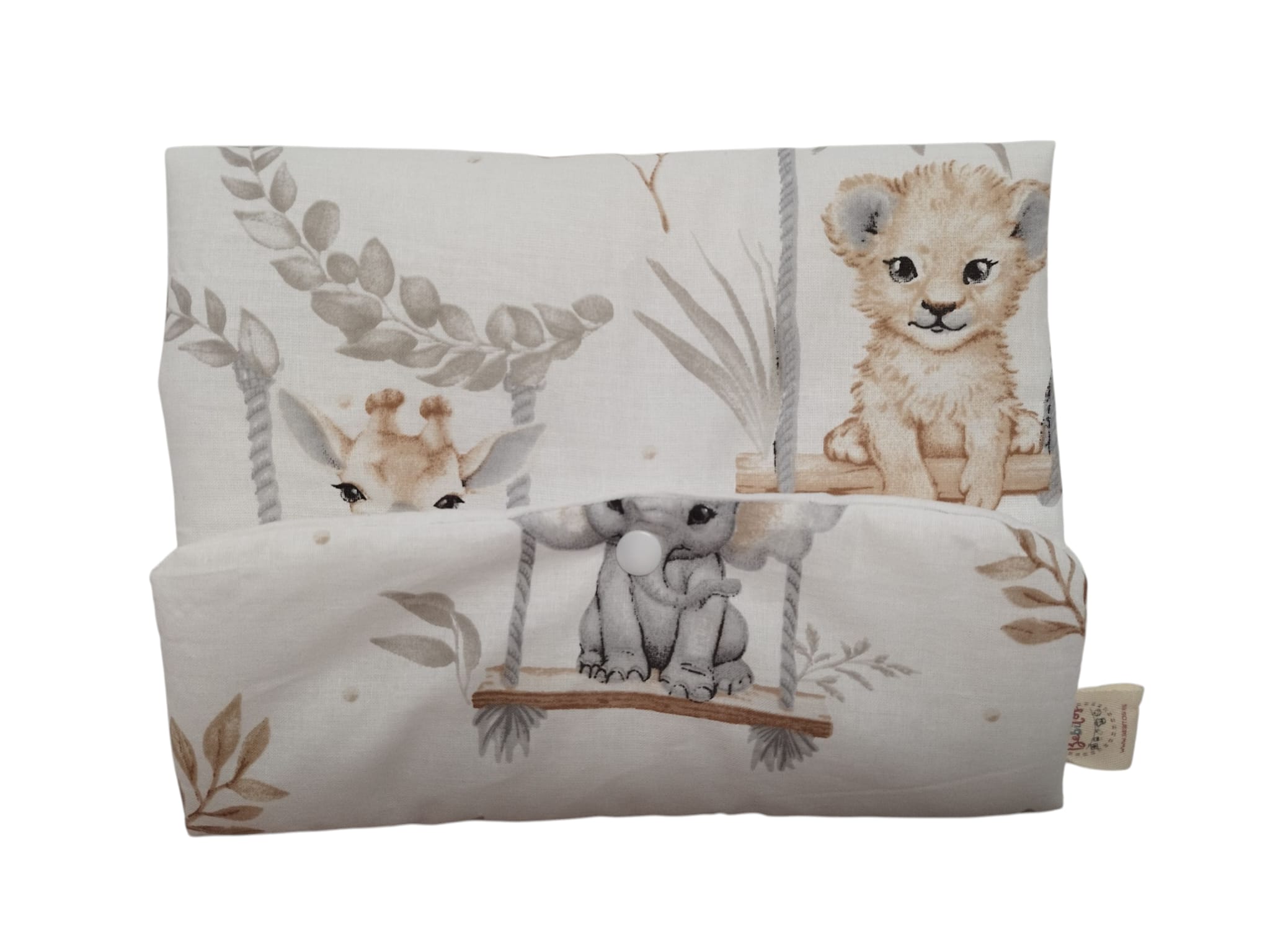Con esta funda portatoallitas podrás tener las toallitas húmedas a mano y pequeños accesorios del bebé cómo algún pañal de repuesto bien organizado.