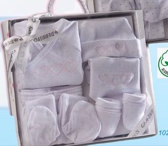 Set primera puesta blanco están confeccionados en algodón de punto extra suave para la delicada piel del recién nacido.