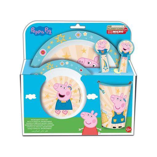 • Composición: juego de comidas para niños. Incluye un plato, un tazón pequeño, un vaso, un tenedor y una cuchara. Este conjunto es adecuado para niños de 12 meses.